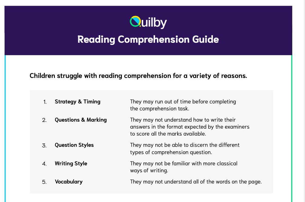 "I can't recommend Quilby enough! It's helped my eldest and turned him from someone who really struggled with comprehension to someone who can complete the exercises to a very high standard. He went from only getting half right to now only dropping 1-2 points per exercise