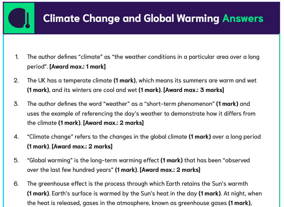 As Quilby give you the answers (unlike other sites) you don't have to do the exercise yourself to mark it! So after a bit of guidance, he understood what he needed to look for, what the questions were asking and how many points he needed to make or reference to achieve the higher marks