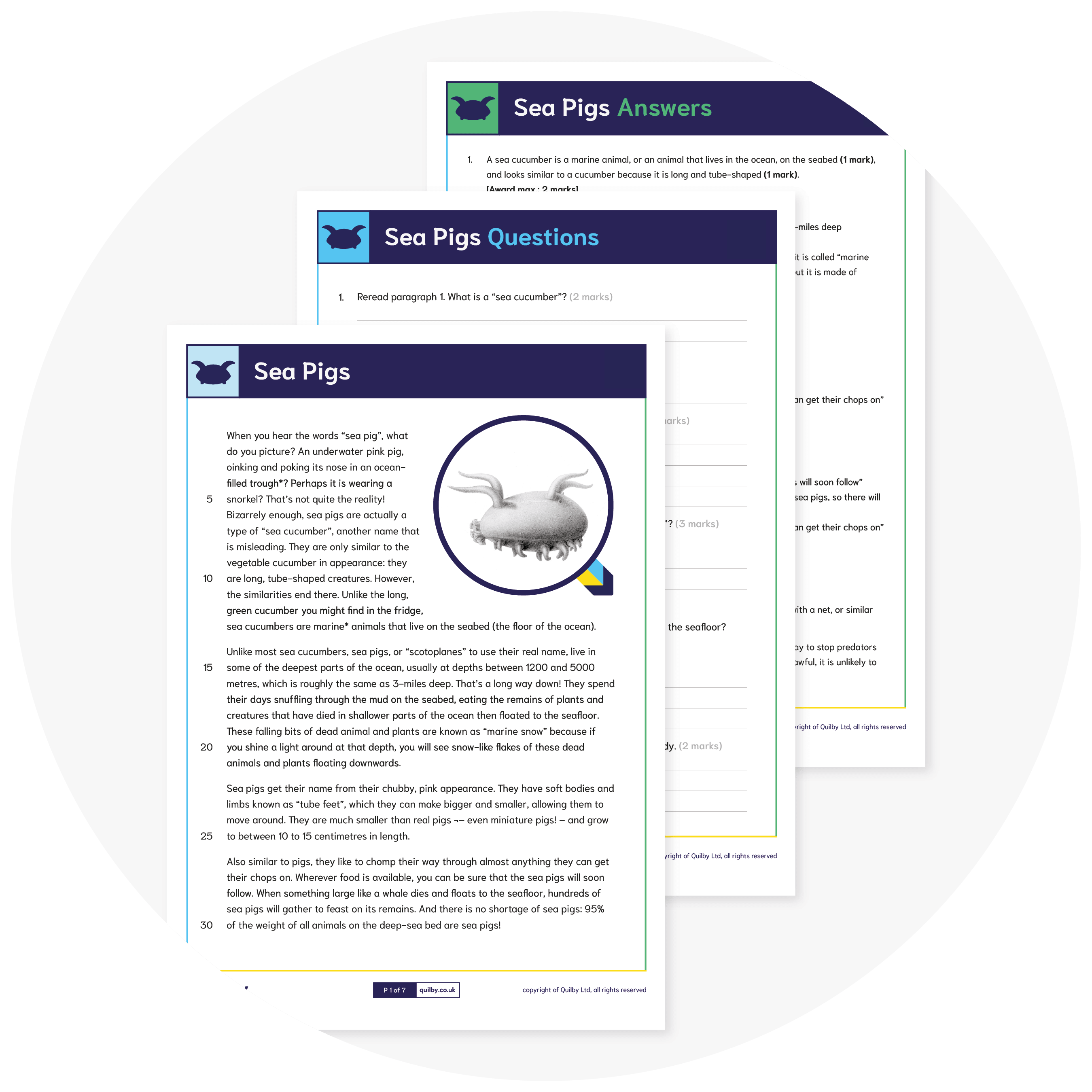 We create Key Stage 2 reading comprehension worksheets for children aged 9, 10 and 11...